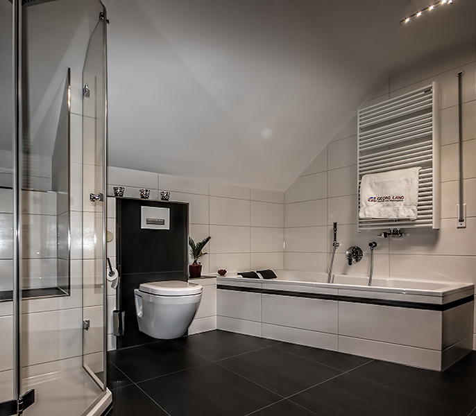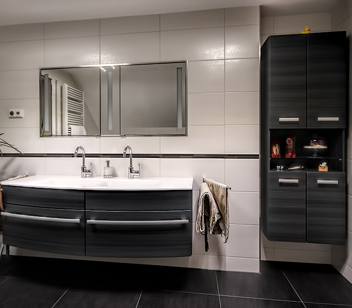 Im Herbst 2014 haben wir bei einer Pegnitzer Familie das Badezimmer im 1.Obergeschoss saniert. Besonders schön ist die große trapezförmige Badewanne, in der man auch zu zweit wunderbar relaxen kann ;-) Weitere Akzente wurden durch den Einbau des flächenbündigen Spiegelschranks sowie der Echtglas-Duschabtrennung mit „Shower Guard”-Verglasung gesetzt. Der Wohlfühl-Faktor wird zudem durch ein Geberit Duo-Fresh-System erhöht, das immer für angenehm frische Luft sorgt.