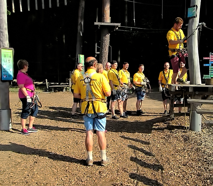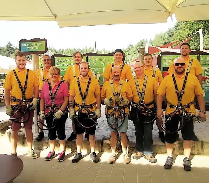 Am Freitag, dem 20. Juli 2018 fand unser Betriebsausflug statt. Um 7.15 Uhr war Treffpunkt am Firmengebäude. Um sich für die anstehenden Strapazen zu stärken, ging es erst einmal zum Weißwurstfrühschoppen. Der Bus brachte uns anschließend in den Kletterwald nach Weidenloh. Nachdem alle den Parcours gut gemeistert hatten, genehmigten wir uns erst einmal eine wohl verdiente Mittagspause. Anschließend ging es aber noch weiter – nach Muggendorf, wo wir uns im Kanufahren ausprobierten. Die „Gaudi“ während unserer 8 km langen Bootsfahrt auf der Wiesent war am Ende riesig :-D Am Abend gab es nochmals eine ordentliche Brotzeit, währenddessen der Tag seinen stimmungsvollen Ausklang fand ...