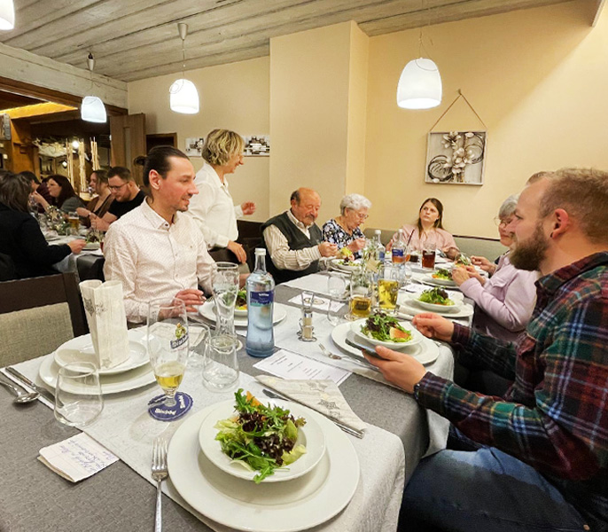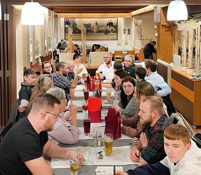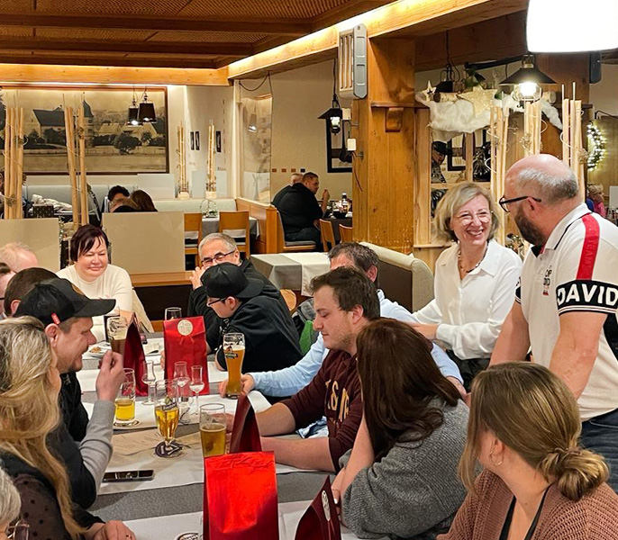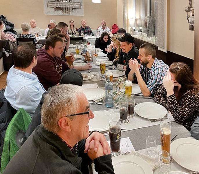An der Weihnachtsfeier im Gasthaus Freiberger hatte Georg Lang die besondere Freude, wieder zwei Jubilare ehren zu können. Zum einen konnte der Firmengründer seinen Sohn Mario für bereits 15 Jahre Betriebszugehörigkeit beglückwünschen: „Mario ist heute voll im Büro integriert und zu einer großen Stütze in unserem Betrieb geworden.“
