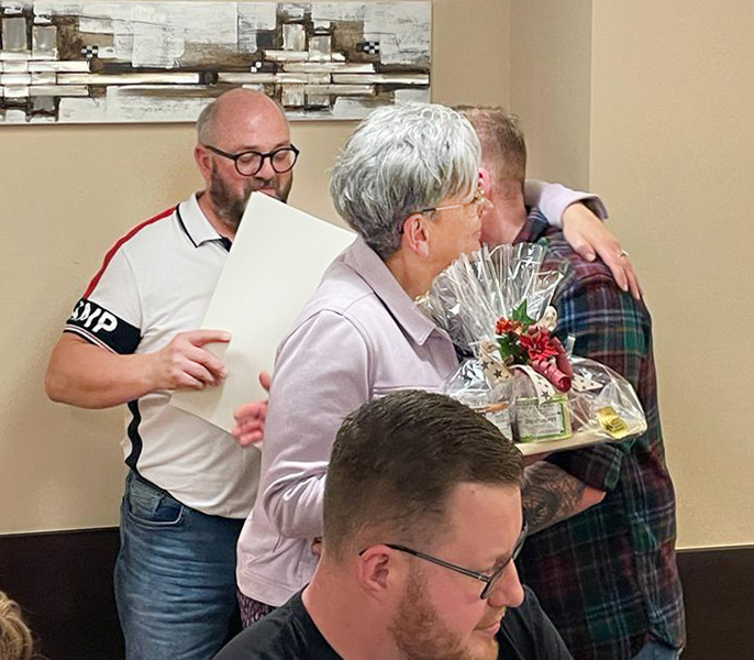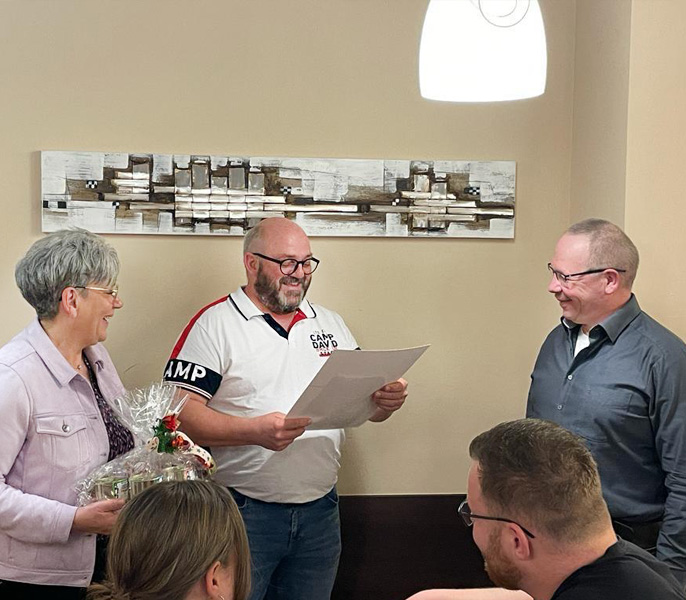 Beide Jubilare erhielten eine Urkunde und Geschenke. Die ganze Firma sagt: DANKE!