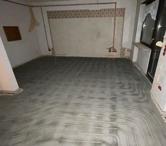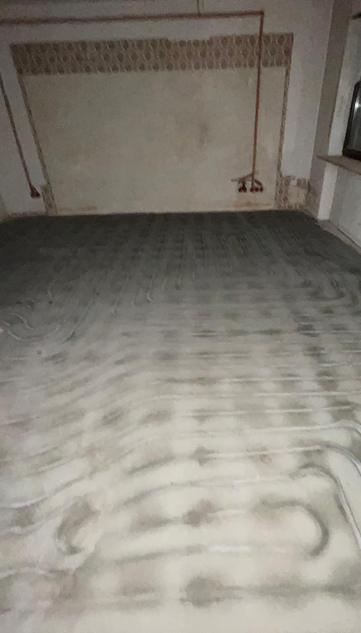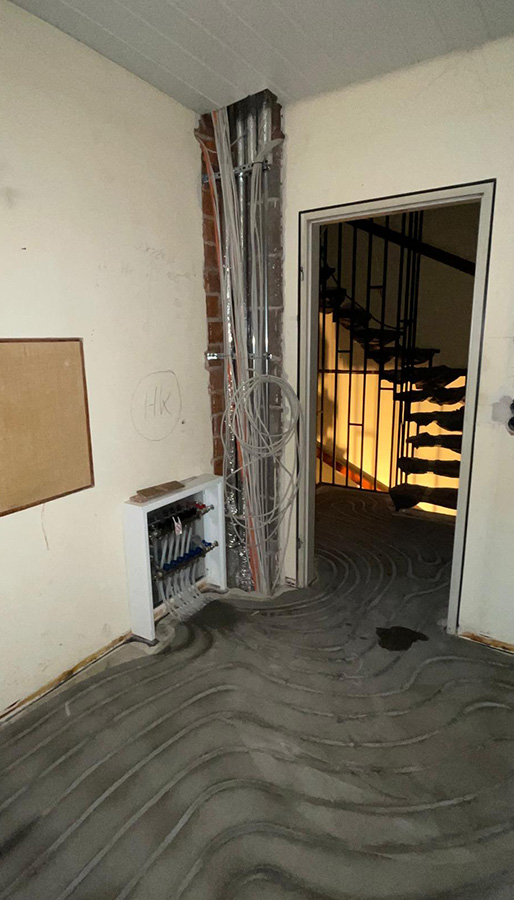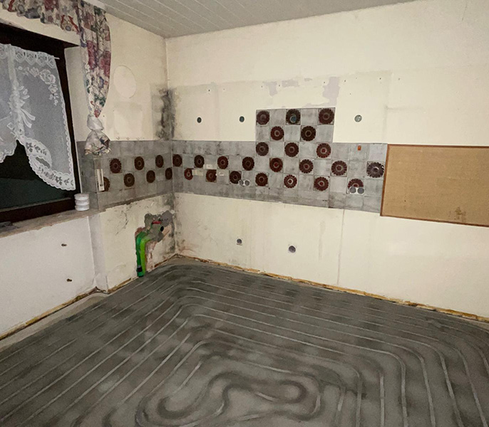 Im Oktober 2024 wurde in einer Pegnitzer Immobilie eine Fußbodenheizung in den bestehenden Estrich eingebaut. Dabei wurde der Zementestrich zunächst sauber gefräst, dann die neue Fußbodenheizung gerade eingezogen und anschließend der Fräskanal sauber verfüllt sowie die gesamte Bodenfläche sauber verschachtelt. Als nächstes installieren wir die neue Wärmepumpenanlage, die den alten Ölheizungskessel ersetzt. Der Kunde kann sich dann über eine zeitgemäße, energieeffiziente Wärmepumpenanlage freuen.