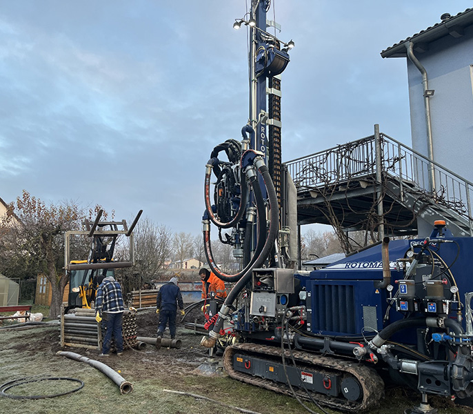 Im Dezember 2024 wurden für ein Einfamilienhaus in Bayreuth die Bohrungen für Erdwärmesonden begonnen. Im Februar 2025 starten wir mit dem Umbau der bestehenden Heizungsanlage von einem Ölkessel auf eine Geothermie-Anlage.