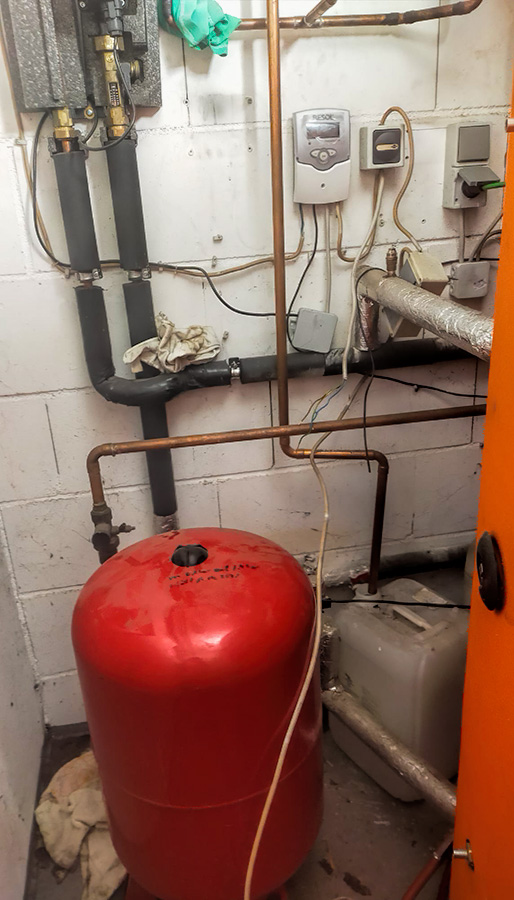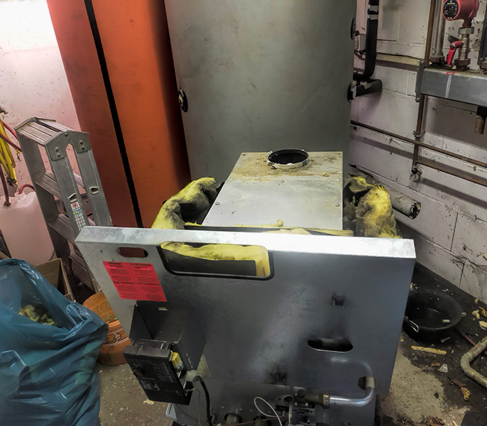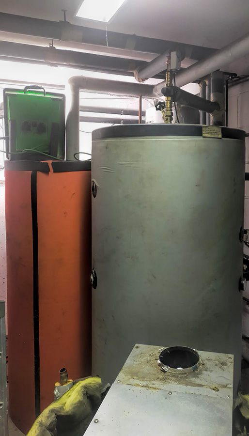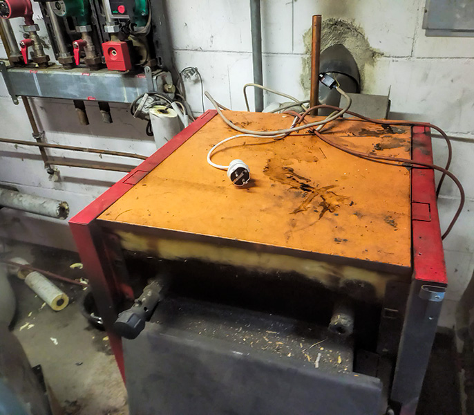 Ab heute (10.2.2025) geht’s der alten Anlage an den Kragen: Demontagearbeiten der vorhandenen Öl- und Holzheizung.