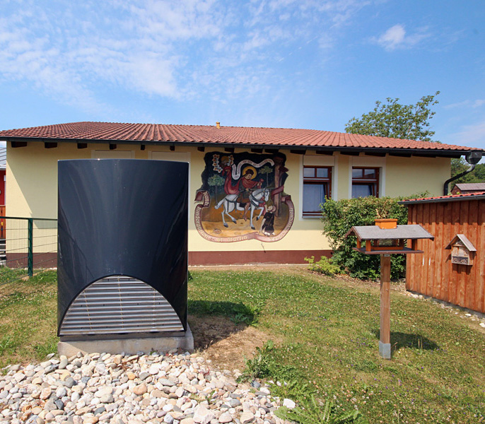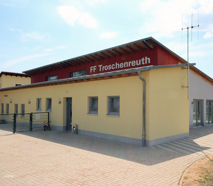 Im Jahre 2009/2010 wurde der Kindergarten in Troschenreuth teilsaniert und ein Anbau erstellt. Desweiteren wurde das Feuerwehrhaus komplett abgerissen und ein moderner Neubau für die Feuerwehr errichtet. Beheizt wird der gesamte Kindergarten und das Feuerwehrgerätehaus mit einer Luft-Wasser-Wärmepumpe, die sich im Außenbereich befindet. Die Wärmepumpe ist mit einer Nahwärmeleitung mit dem im Kindergarten stehenden Pufferspeicher verbunden. Dort befindet sich auch die Wärmeverteilung.